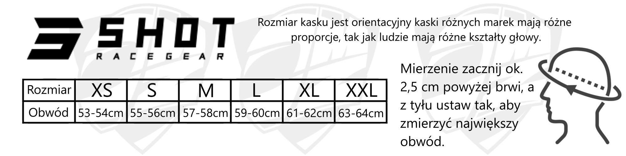* Pamiętaj, że kask motocyklowy zapewnia jedynie ograniczoną ochronę. Żaden kask nie jest w stanie całkowicie wyeliminować ryzyka urazu głowy.