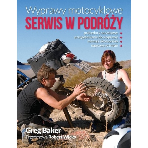 Poradnik o naprawach i serwisowaniu motocykla w czasie wyprawy motocyklowej. Dla motocyklistów, którzy chcą być samowystarczalni podczas jazdy. Praktyczne i łatwe procedury serwisowe, przydatne w drodze akcesoria i sposoby na radzenie sobie z awarią na szlaku, to niezbędnik dla każdego podróżnika. Jasne instrukcje, czytelne zdjęcia i schematy. Zbiór umiejętności potrzebnych do podstawowej konserwacji zarówno na krótkie wycieczkach, jak i wielotygodniowe eskapady.