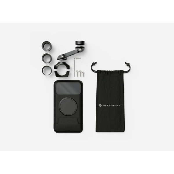 Montowanie telefonu nigdy nie było prostsze! Shapeheart opracował uchwyt, który polega na bardzo mocnych, neodymowych magnesach - dzięki czemu nie trzeba się obawiać o swój telefon podczas przejażdżek. W zestawie znajdziemy pokrowiec na wszystkie części zestawu, etui (występują w różnych rozmiarach) oraz mocowanie na kierownicę.