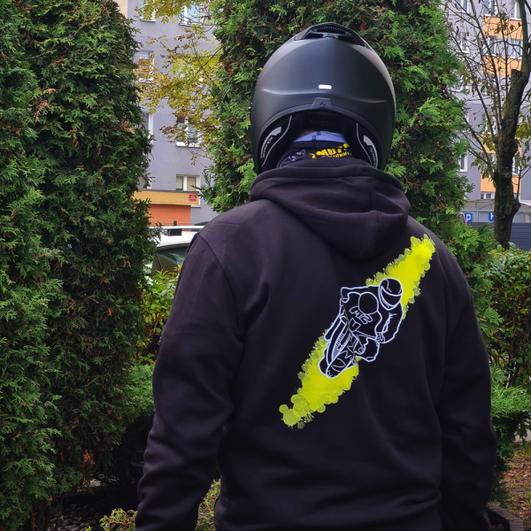 W chłodniejsze dni można założyć bluzę na kurtkę motocyklową zyskując tym komfort termiczny i styl, zalecamy wtedy wziąć o rozmiar większy, aby łatwiej było ją zakładać :)